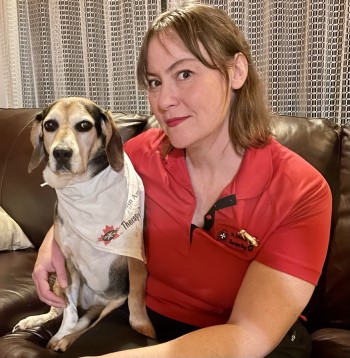 *Luna (seen here with Dr. Becca Babcock) is a St John Ambulance Therapy Dog. She provides comfort and companionship. No medical or psychiatric services are offered during these sessions. For mental health support, please visit the Mental Health Services at Dalhousie's Student Health and Wellness.
