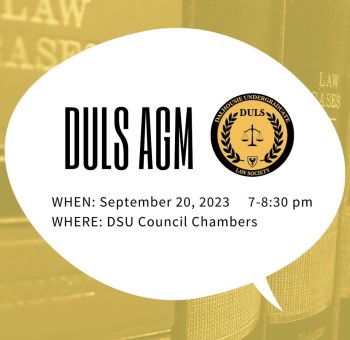 Come learn more about the Dalhousie Undergraduate Law Society and our plans for the upcoming year! At this event, we will be introducing our executive team, holding elections for new executives, and discussing our upcoming events and initiatives.