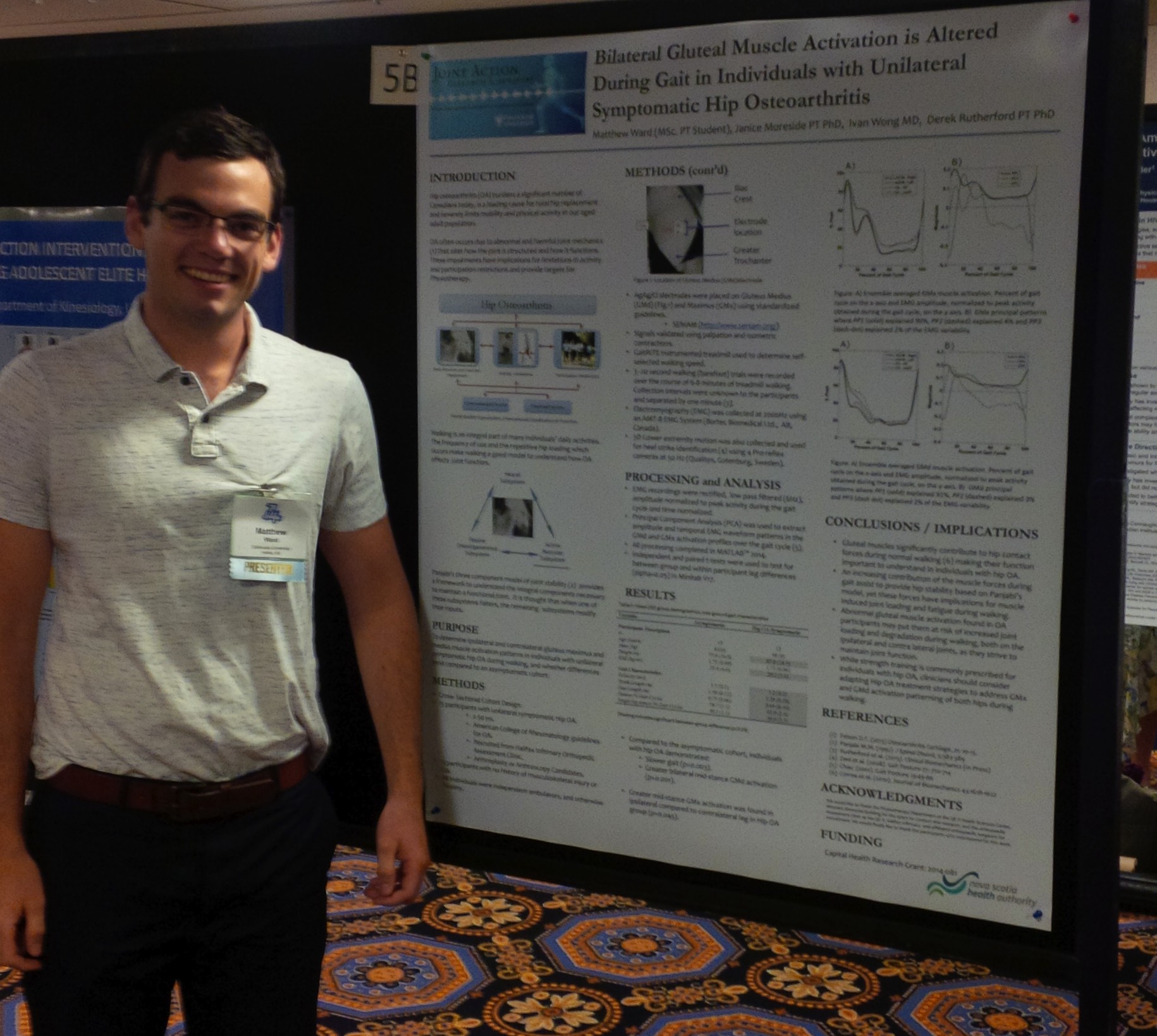 MSc PT student, Matthew Ward presents "Bilateral gluteal muscle activation is altered during gait in individuals with unilateral symptomatic hip," at Congress in June, 2015.
