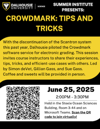 The next session, "Crowdmark: Tips and Tricks," will take place on Wednesday, June 25 in-person and online.