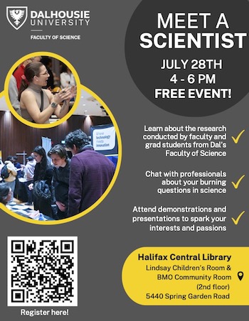 Please share this free, family-friendly event with anyone who may be interested in attending, including future students, alumni, and members of the public who are curious about science. All members of the Dal community are of course welcome to drop by! Refreshments will be provided.
