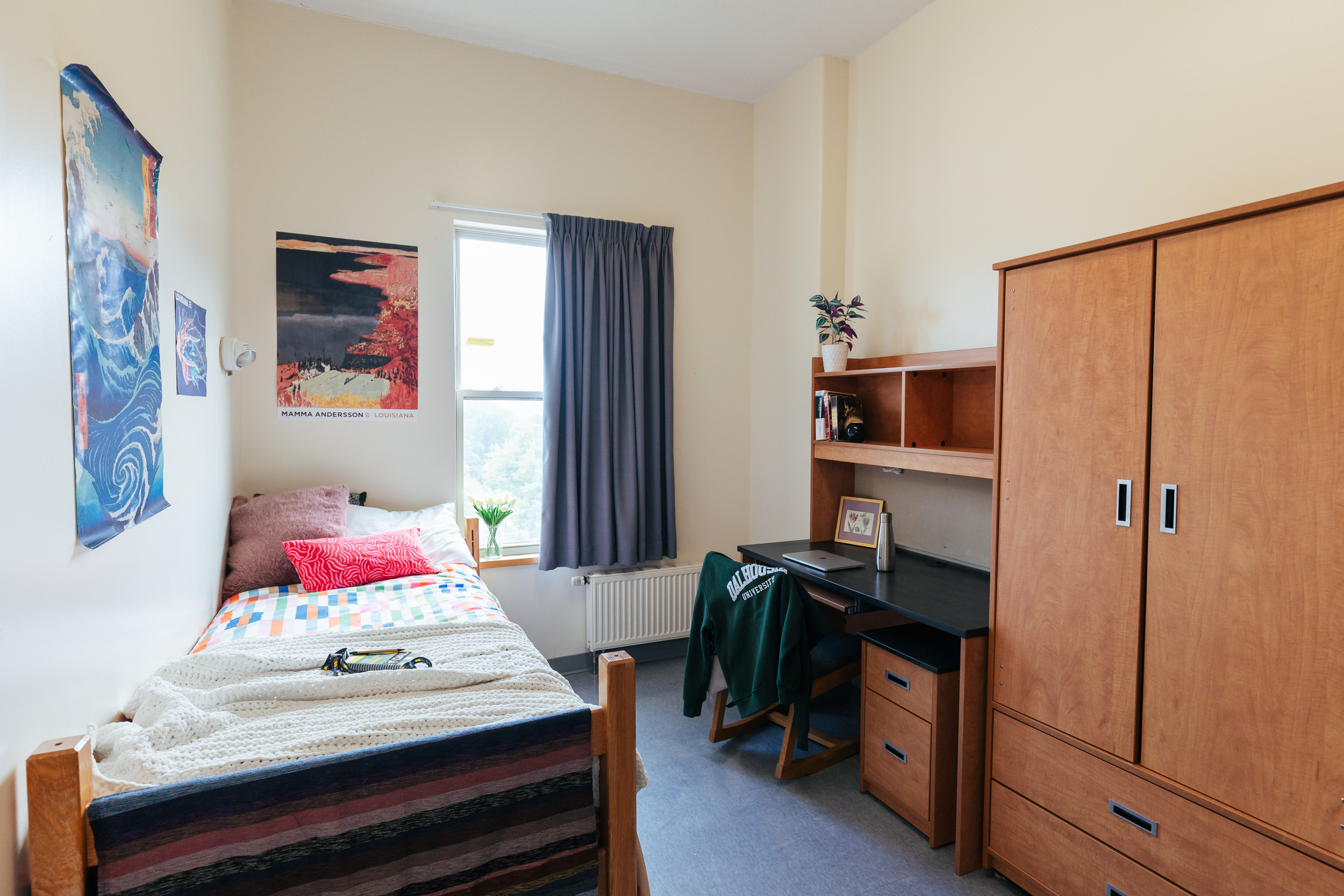 These photos represent a sampling of room types available in Risley. Room layouts may vary depending on their location in the building. For more information on your room, contact the Residence Office.