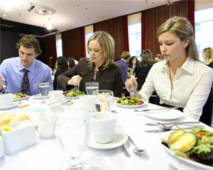 | Students Joseph Schow, Shelley Alexander, and Brittany Houweling attended the lunch to pick up etiquette tips. (Nick Pearce Photo) |