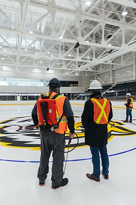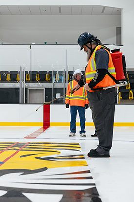 The ice installation at Dal’s Oulton-Stanish Centre last week provided a fascinating glimpse into the blend of precision, craftsmanship, and deliberately low-tech methods used to create a world-class rink.