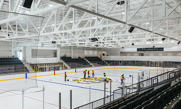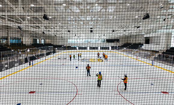 1. The NHL-sized rink holds roughly 73,000 litres of ice, about the volume of a large backyard pool.