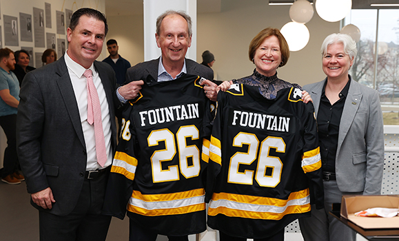 Maloney thanked everyone who attended for coming out to help celebrate the opening. “While we have been fortunate to use the Forum to continue running and building our varsity teams, recreational programs and hockey camps, we sorely missed having a dedicated arena on campus.”