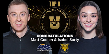 Congratulations are in order for Tigers student-athletes Matt Coolen and Isabel Sarty, who yesterday were named as two of Canada's Top 8 Academic All-Canadians for 2019-20. It marks only the second time that Dalhousie student-athletes have received both Top 8 awards from the AUS conference. Matt, a track and field star, graduated from Engineering in the spring, while Isabel, a multi-AUS record holding swimmer, is studying neuroscience.