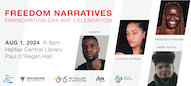 Celebrate Emancipation Day with a dynamic showcase of artists and writers tonight beginning at 6 p.m. at the Halifax Public Library. Presenters include Oluseye, Andre Fenton, Guyleigh Johnson, and Francesca Ekwuyasi. Event details.