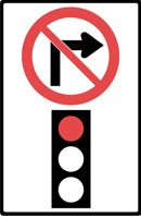 Some intersections may have No Right on Red signage indicating to drivers that they cannot turn right on a Red light |
