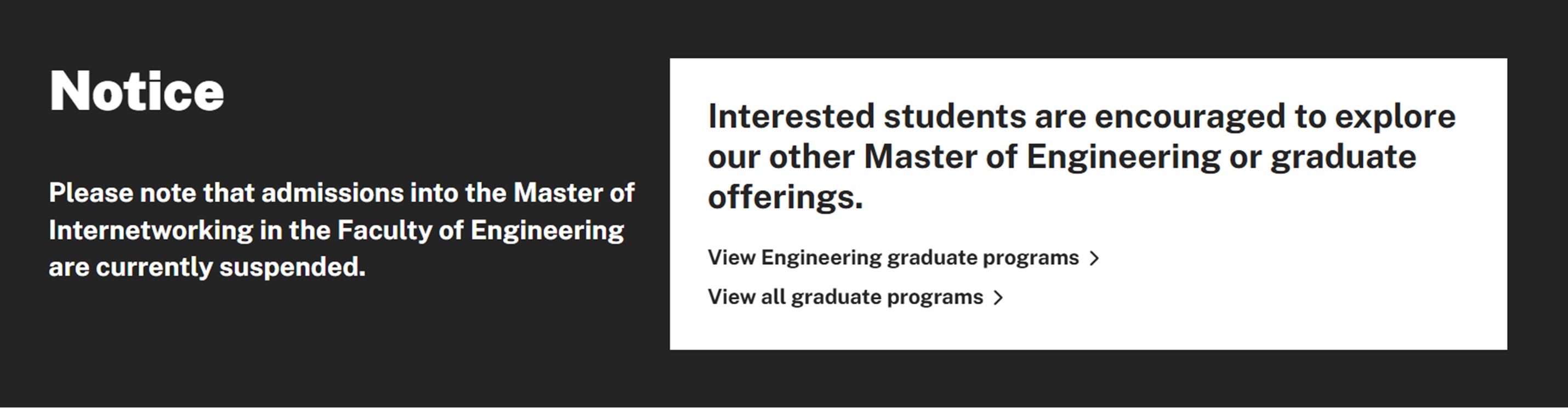 Notice: Please note that admissions into the Master of Internetworking in the Faculty of Engineering are currently suspended.